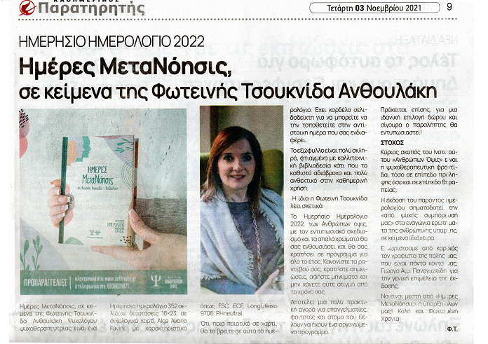 Ευχαριστούμε θερμά τον Παρατηρητή Σερρών για το προσεγμένο αφιέρωμά του στο Ημερήσιο Ημερολόγιο 2022: