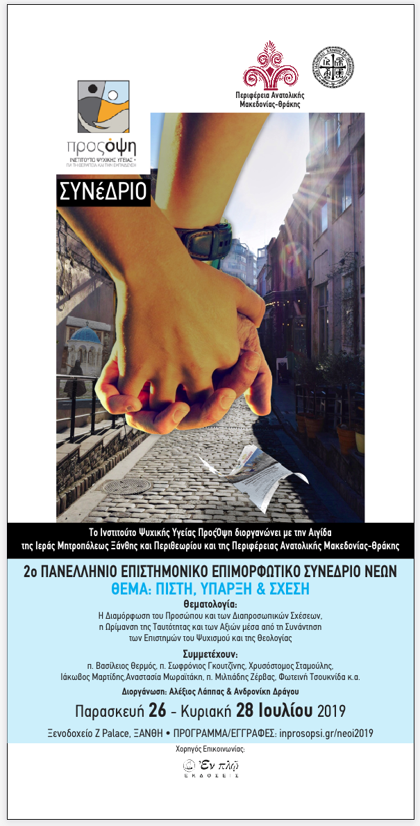 Mε βαθιά ευγνωμοσύνη στο ζεύγος, Αλέξη Λάππα και Ανδρονίκης Δράγου, για την τιμή να συμμετέχω με εισήγηση στο 2ο Πανελλήνιο Επιστημονικό Επιμορφωτικό Συνέδριο Νέων, ανάμεσα σε τόσο εκλεκτούς σεβαστούς πατέρες αλλά και επιστήμονες ομιλητές, στην Ξάνθη από 26 έως 28 Ιουλίου 2019, αισθάνομαι την επιθυμία να καταθέσω ένα μικρό απόσπασμα της εισήγησής μου: